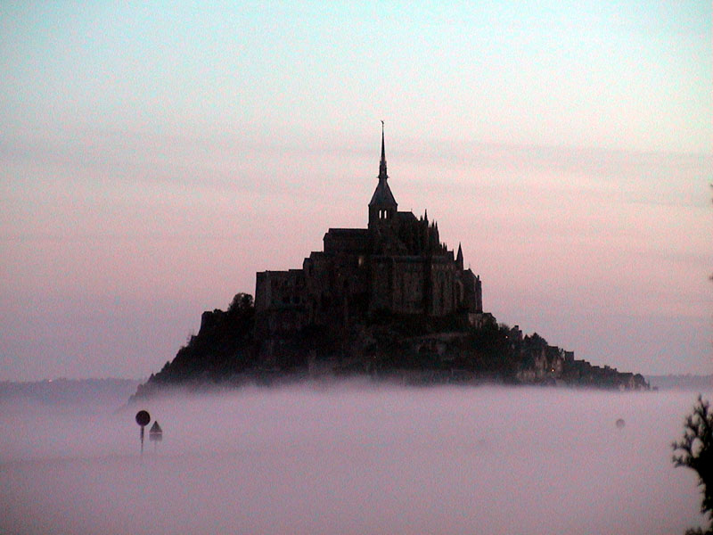 翌朝、部屋から見た朝もやにけむるモンサンミッシェル。写真をクリックすると大きく表示します。ちなみにこのホテルと同経営で有名な”プーラールおばさんのオムレツ屋”さんがあります。駐車場から入ってすぐ左側で卵をリズムマシーンのようにリズミカルにかきまぜる音が聞こえてくるのですぐわかります。が、まずこのかきまぜ係と焼き係の若者の愛想が悪いこと!カメラを向けても、誰かが話しかけてもニコリともしません。そして私の母も以前ツアーで訪れてランチにオムレツをいただいたようですが、個人で行くとはっきり言って”高い!”です。有名なためか、かなりお客さんは入っていますが、オムレツは(日本人には)ちょっと大きいし(確か3千円位)、シェアさせてくれないし、グラスワインは確か18ユーロも(デキャンタではありません、グラス1杯です。)して二人でフランス最初のランチなのに8〜9千円もかかってしまいました。う〜ん。同経営とは言え、私達が泊まったホテルは接客よかったんですが。