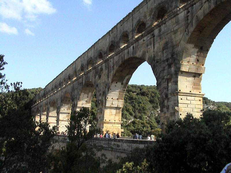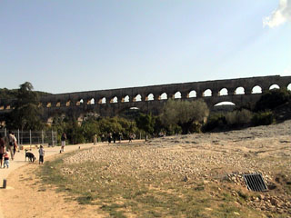 ここも人が多かった、ポンデュガール。(ローマ時代の水道の橋)写真をクリックすると大きく表示します。今日は土曜日、ひょっとして・・・と思い帰りにスーパーに寄り、エビアン(赤ちゃん用)とコントレックス(大人用)を買い込みました。また陽も高い午後6時半でしたが正に閉店時刻らしくお酒コーナーでシードルを見てたら”早く勘定して帰ってくれないか、閉店時間なんだ!”(仏語なので推測)と言われ店を出て振り返ったらすべてシャッターが閉まっていた。そして翌日の話になるがお昼頃ここを通ると予感的中!”休み”でした、日曜なのに・・・やはりここはフランスなのであった。