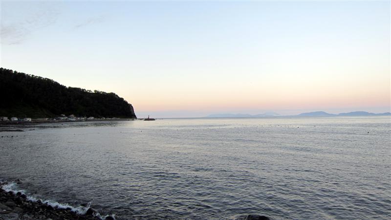 到着時は真っ暗闇の海はこんな大きな入江でした。ここも北海シマエビの