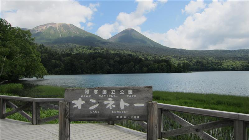 ナビに従いいくつかのダート林道を抜けてオンネトー湖に到着。雲もなく