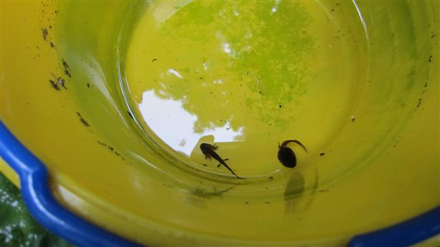 頭がデカいのは、おたまじゃくし。ヒレがあるのがサンショウウオの子供。