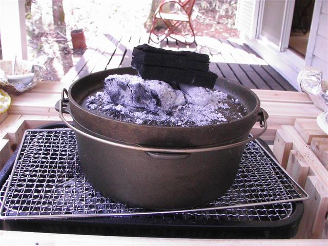 ふたの上にも炭を置いて加熱します。