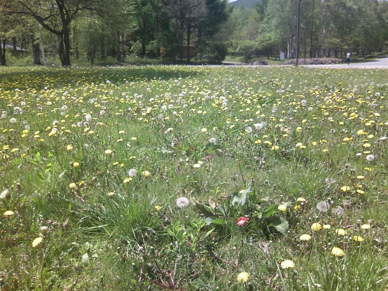 標高1200mの別荘地も春真っ盛りです。広場が一面たんぽぽでいっぱい!