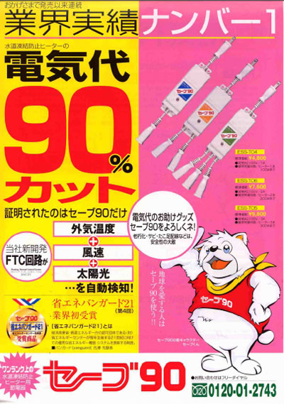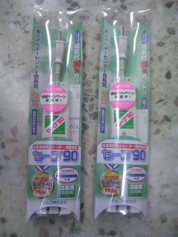 先日の記事で話題にした水道凍結防止帯の節電器、セーブ90(3本用)を