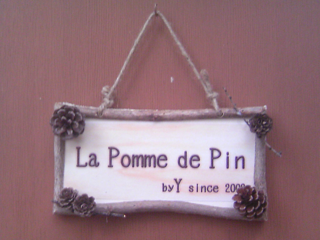 そして現地でトレードマークの松ぼっくりを拾って子供達と貼り付けてみました。