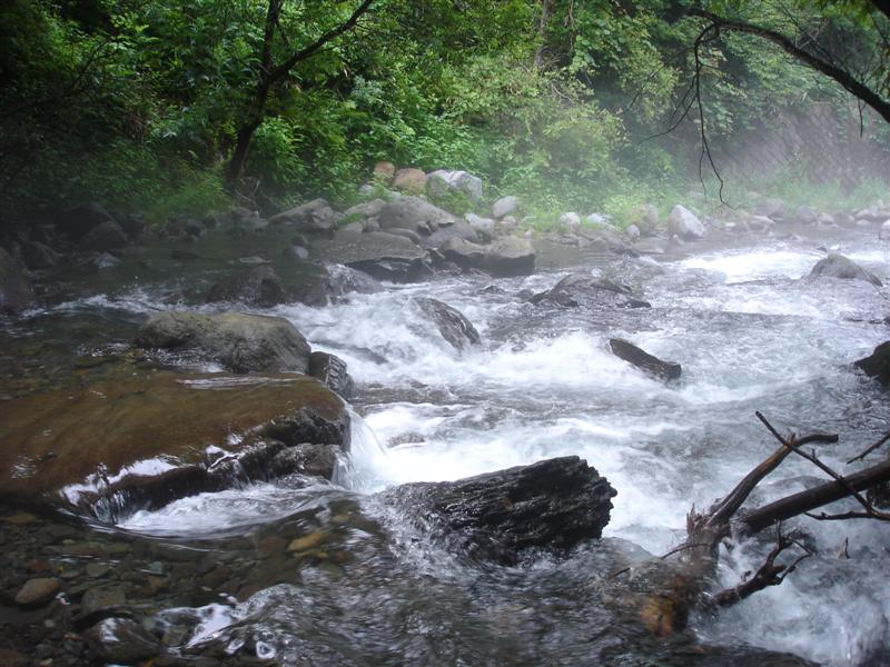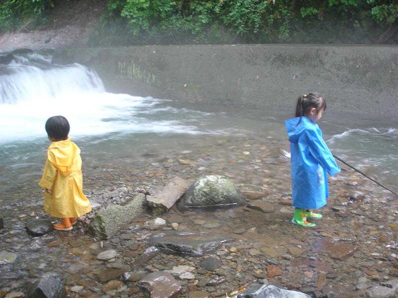 渓流で子供と釣りのまねごとをした後、再びポツポツと