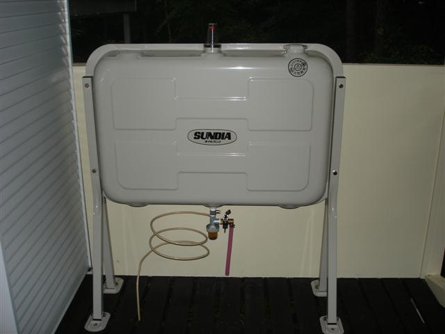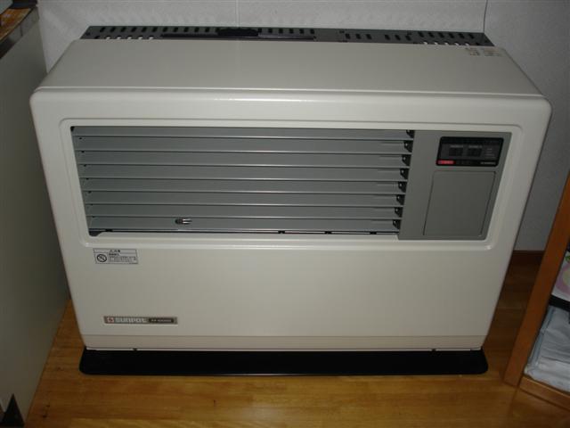 FF式大型ファンヒーターと200リットルタンク。