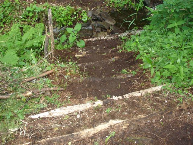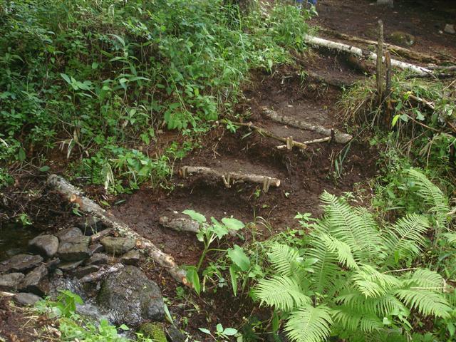 そして自分は伐採した唐松の枝でせせらぎへ降りる傾斜に