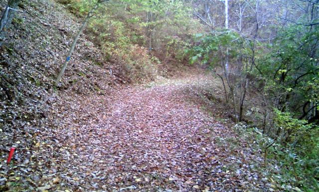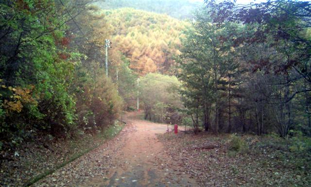 裏のお庭と同様に、別荘地内の道路もすっかり様変わり。 お隣の別荘地の未舗装路などは、すっかり山道に なっています。砂利が見えない! 落ち葉のじゅうたんが敷き詰められています。