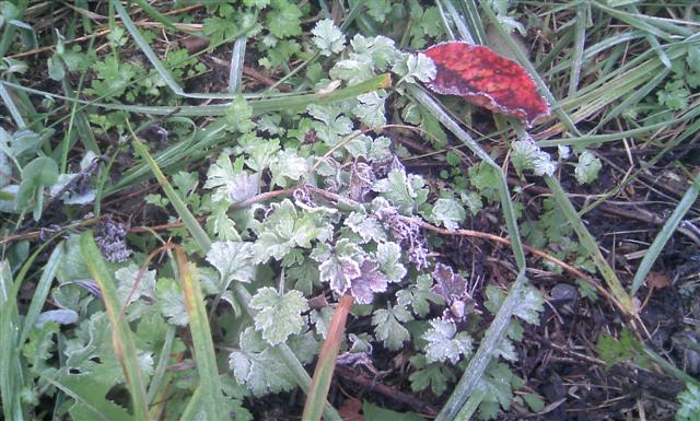 霜がおりているのを発見。だってフリースも着て下界からは