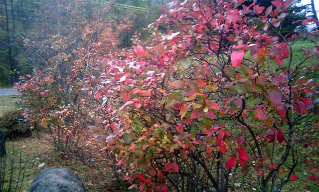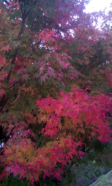 ご近所も 別荘地内でも紅葉は進んでいて、入口にあって 夏には実を収穫したブルーベリーの木も赤くなって いました。(ブルーベリーって紅葉するんですね) そしてメイン通りの脇のあまり大きくないカエデの葉も 色づいてきて・・・ いよいよ紅葉は里山へと下っていきます。