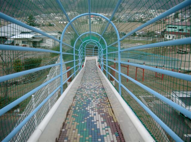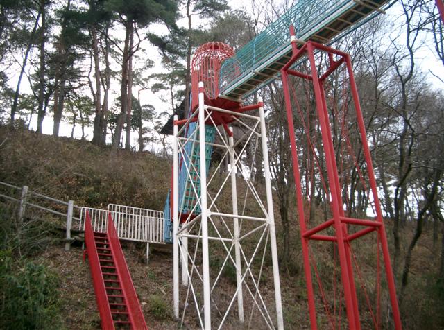 された公園へ。大型遊具とローラー滑り台があります。