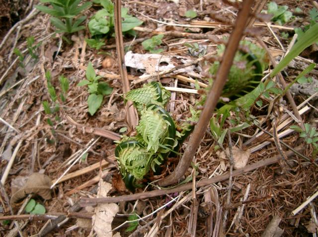採れた山菜はこごみ。去年の春来てみたらすでに採られていた