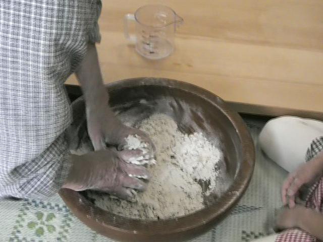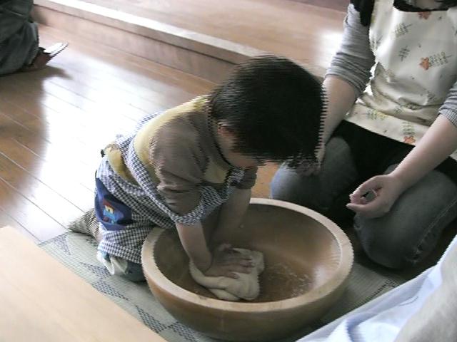 熱湯を加えコネます。