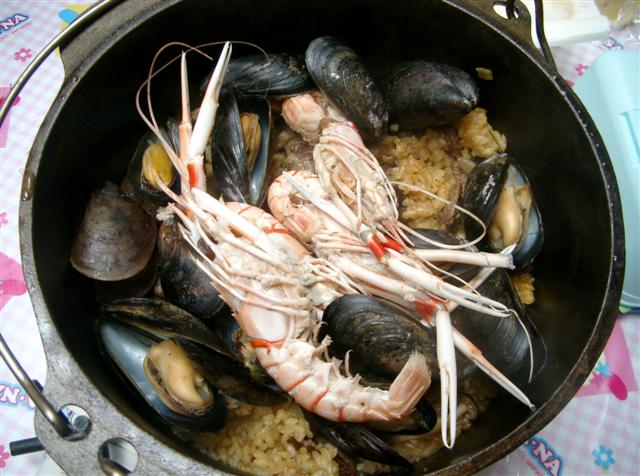 ダッチオーブンでパエリア