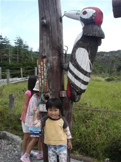 最後に山頂駅前で募金して大きなキツツキさんにお礼してもらって