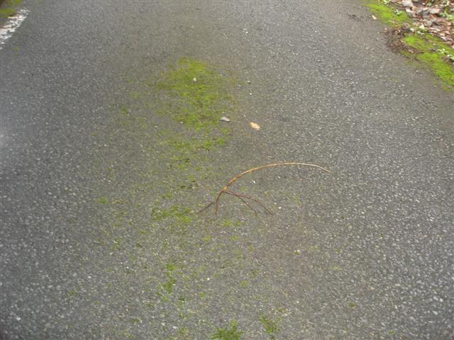 撮影を終えて、林道から県道388号に戻ります。この林道、道幅はこんなで、3ナンバーの4輪ではあまり進みたくありません。しかし路面には、コケが生えているので2輪でも手放しでは喜べません。県道に戻るとこの分岐に標識がありました.. http://bit.ly/4SLACE