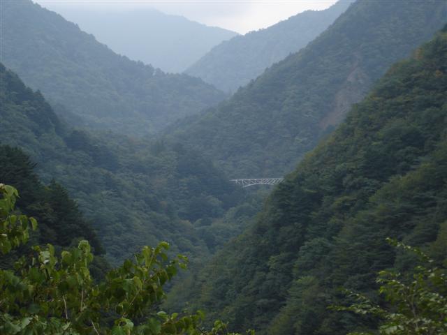 崩落にて通行止め。その先で鉄道はこんな橋を渡って
