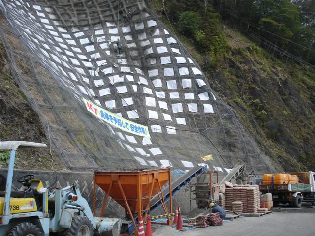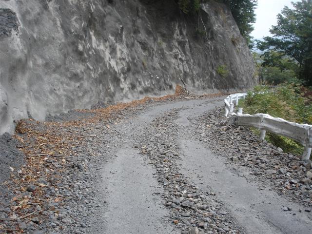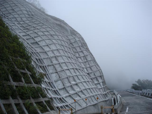 なんかいやな予感・・・ちょうど崖の工事現場にさしかかりました。