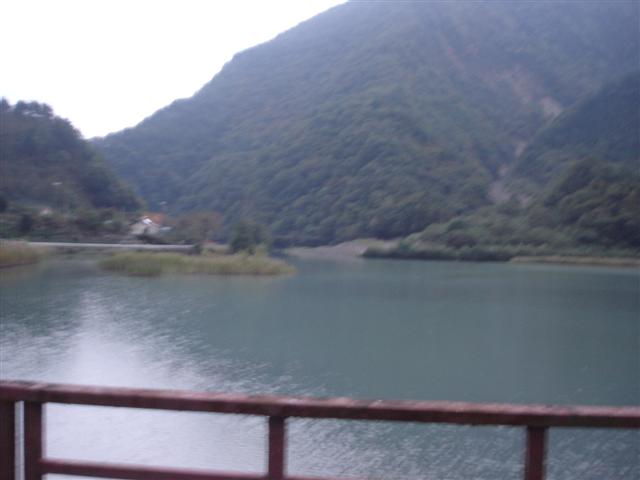 やっとふもとの雨畑湖に到着しました。夕暮れで写真も限界でした。