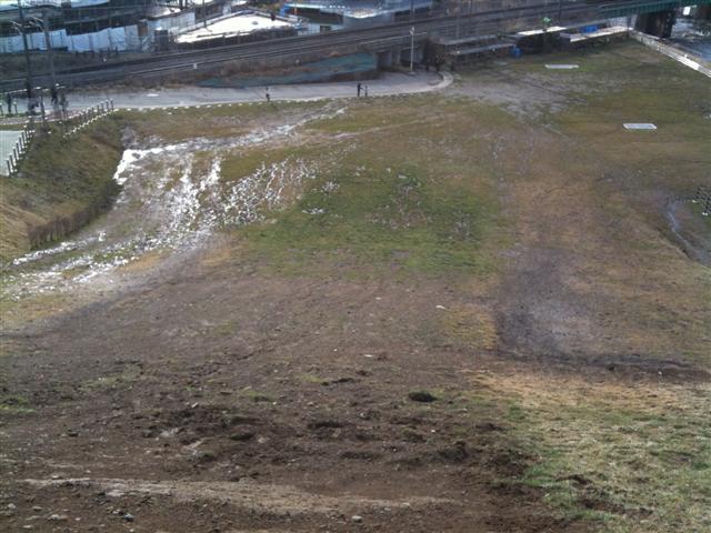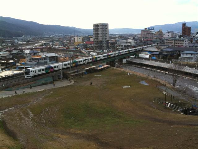 周りはぐるっと桟敷席だらけ(笑)JRも通ってすごい場所です。