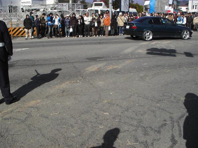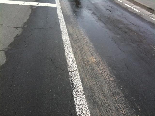 曳かれた後が路面に残っています。水を撒いて滑らせているようです。