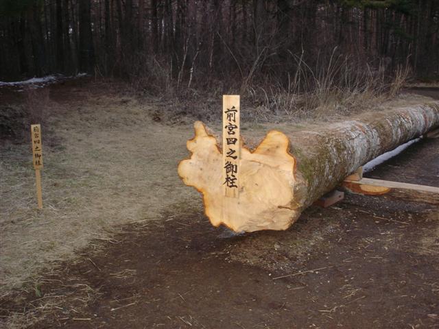 曳行順最後の前宮四の御柱の写真です。