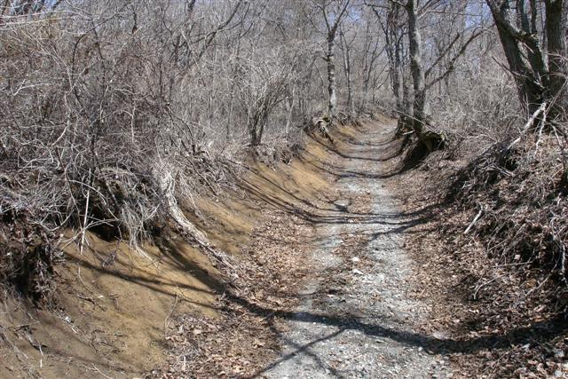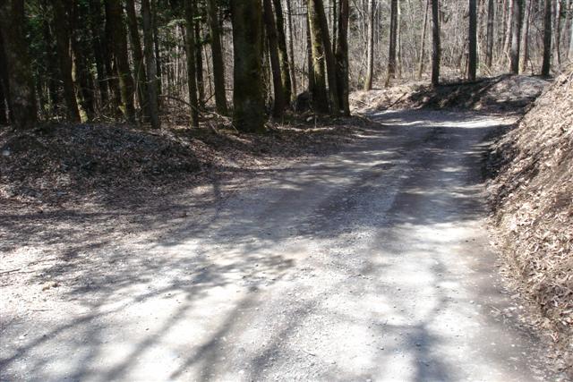 そしてこの分岐を右へ。峠への上りになります。4輪の轍がありますが