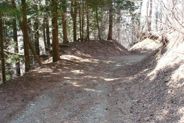 さっきの峠の鞍部に斜面を下ります。この後は河口湖の若彦トンネルを