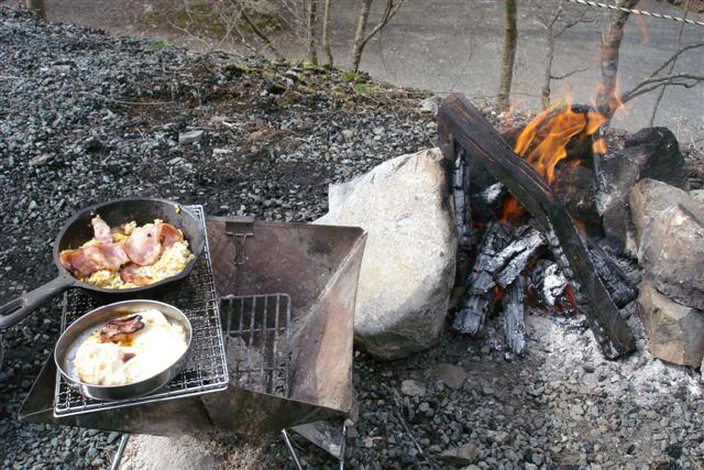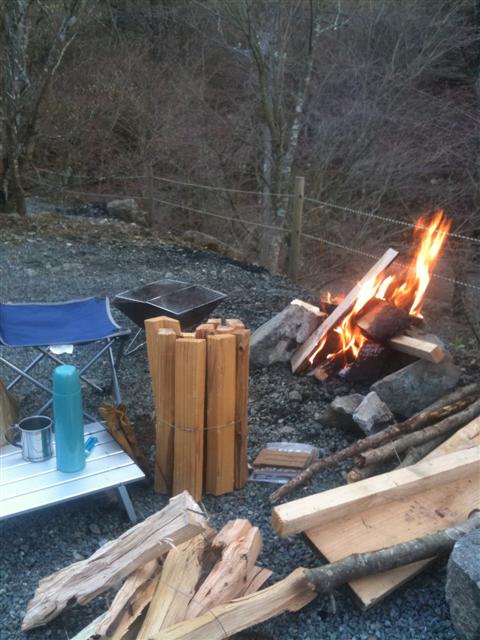 さてサイトに戻って焚き火点火。