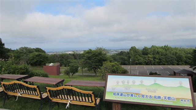 向こうには、昨日散歩したキラコタン岬やその隣の宮島岬が一望できます。