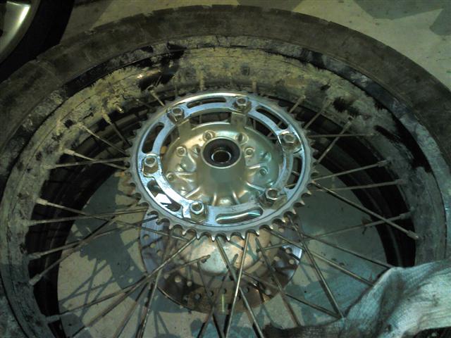 組み上げます。新しいタイヤは柔らかくて簡単に組みあがりました。