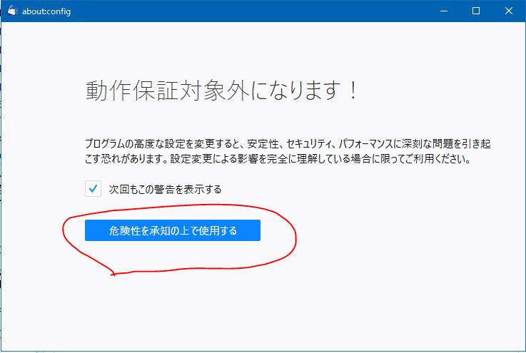 注意ダイアログを経て設定エディタへ。