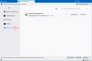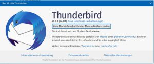 ここで日本語リソースをダウンロードしておきましょう。おっとその前に何度かこのドイツ語版を起動・終了していると、もともと60.0だったバージョンが自動で更新されていきます。(読めないながらもメニューから「Thunderbirdについて」らしきものがありますので見てみてください。)