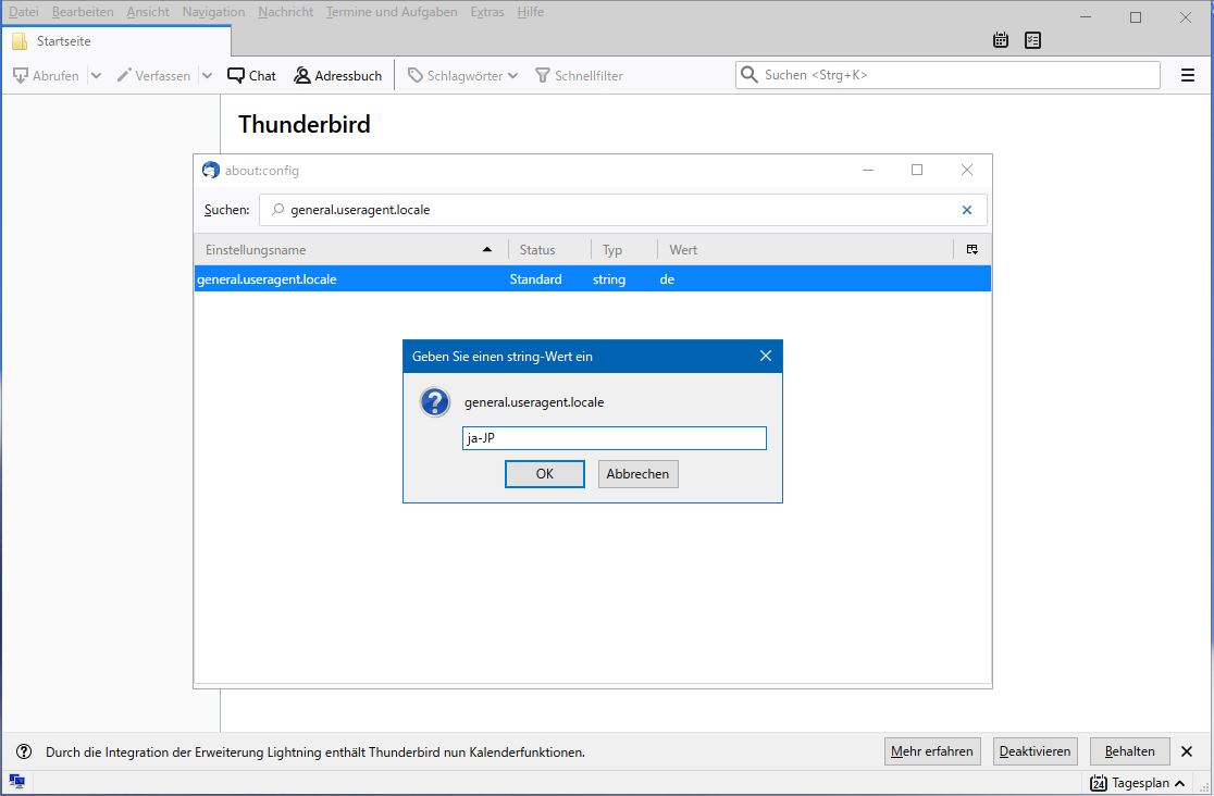 追伸:ロケールの値「ja-JP」は、「ja」が正しいのかもしれません。しばらくして設定エディタから見直すと、いつの間にか「ja」になっていました。(32bit版でも同様ですし、元々の値も「de」でした。)